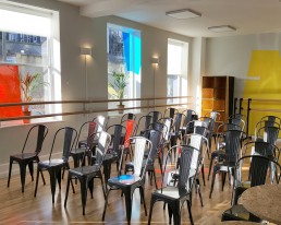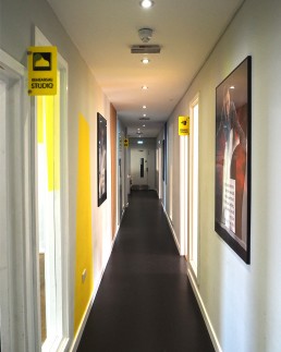 Brighton Institute of Contemporary Theatre Training approached Wall to convert a former office building into a modern facility for degree level dance and theatre training. Wall developed designs in collaboration with the client and fully managed the budget and several teams of specialist contractors for this large project. The existing portico was safely removed and a new steel framed structure erected to create a branded first impression for students. Over 100 linear metres of stud walling was installed which was specifically insulated to dampen sound between studios. New electrics and lighting were installed, flooring was replaced with industry leading sprung dance floor and an intuitive signage system was designed and fabricated for the building. Bespoke furniture was made to meet the clients vision and requirements including versatile interlocking stools and tables and robust office and computer suite fixtures. Seeing the reaction to their new learning space from new and returning students has been incredibly rewarding for all of us here at Wall.