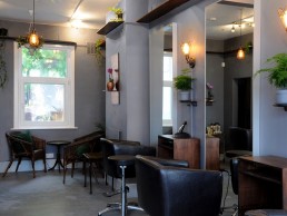 Japonica approached us as they were planning their salon and we were able to offer advice on layout, style and interaction. For this project we used the exposed brickwork of the stripped back building to create a feature behind reception and used hanging and potted plants to draw the room in and create a feeling of intimate privacy for the clients. Bespoke furniture was made using hand cut pieces for a natural organic feel to the space – The curved reception desk is made up of 52 individually cut and sanded pieces! At a later date an insulated staff room was erected in the garden with electricity run out to it and fitted seats and kitchenette. Japonica has since been featured in Elle magazine’s top eco salons in the country.